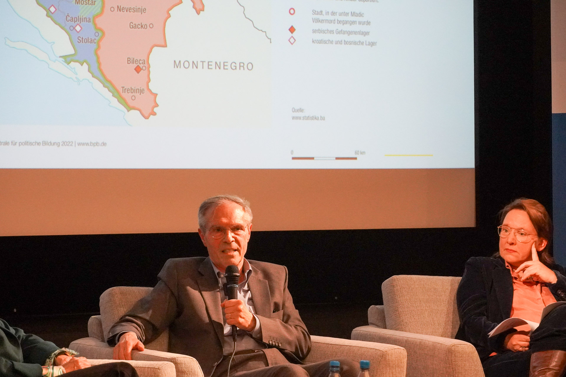 Im Gespräch reflektierten der Diplomat Michael Steiner, die Südosteuropa-Korrespondentin Adelheid Wölfl und der Analyst für den westlichen Balkan Adnan Ćerimagić, was der Friedensprozess bewirkt hat – und wo die Herausforderungen bis heute bestehen. Fragen wie „Wo steht das Land heute – und wie könnte es in der Region weitergehen? Was muss deutsche und europäische Außenpolitik beachten?“ wurden dabei eingehend diskutiert.